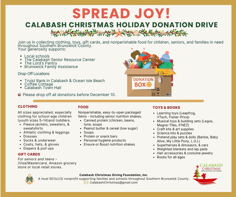 Help bring a little extra joy to families in Southern Brunswick County this season. The Calabash …